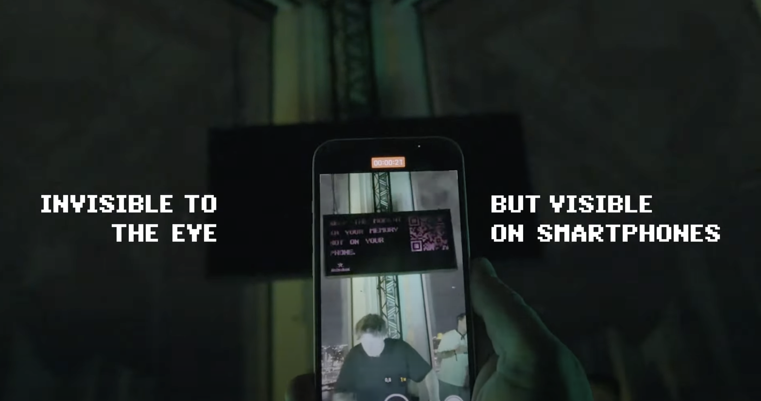 ์ ํตํด ํฐ์ผ๋ก๋ง ๋ณผ ์ ์๋ ๋น๋ฐ ๋ฉ์์ง๋ฅผ ์จ๊ฒจ๋๊ฑด๋ฐ์. <์ด ์๊ฐ์ ํฐ์ด ์๋ ๊ธฐ์ต์ ๋จ๊ธฐ์ธ์> ๋ผ๋ ๋ฉ์์ง๋ฅผ ์นด๋ฉ๋ผ๋ก ์ดฌ์ํ๋ฉด ํ์์ฝ๋๊ฐ ํจ๊ป ์ค์บ๋๊ฒ ๋ฉ๋๋ค. ๊ทธ๋ผ ์์ฐ์ค๋ฝ๊ฒ Boring Mode App์ผ๋ก ์ฐ๊ฒฐ๋๊ณ , ์ด ์ฑ์ ์ค๋งํธํฐ์ด ๋ฐฉํดํ๋ ์๋ฆผ์ด๋ ์์๋ค์ ์ค์ฌ์ฃผ์ด ๋ชฐ์